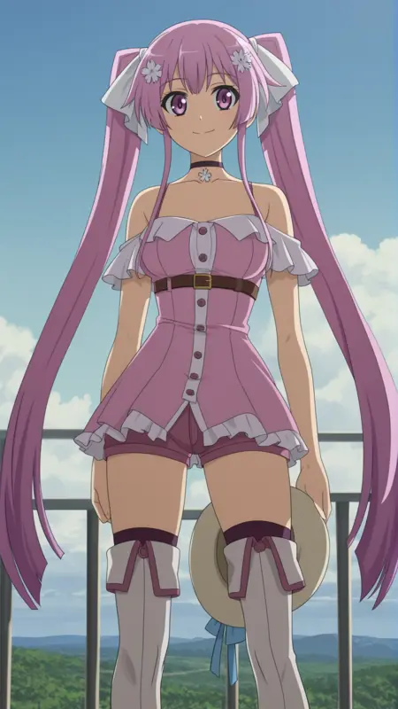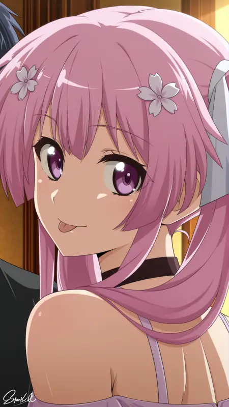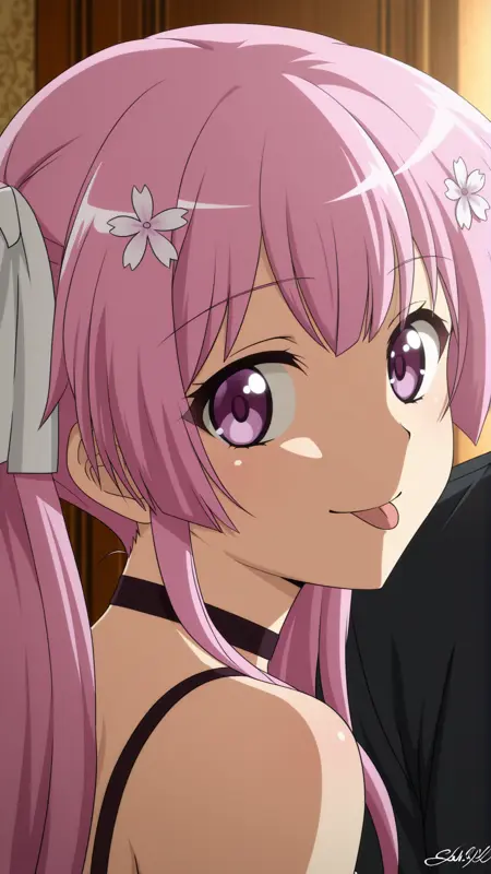 Sakura_XL, hair flower, flower, twintails, ribbon, hair ribbon, purple eyes,