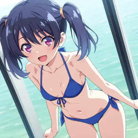 Wang mei-yui (Youkoso Jitsuryoku Shijou Shugi no Kyoushitsu e),dark blue hair,twintail,purple eyes,small breast