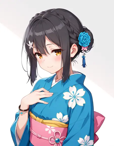 Miyu, long hair, ponytail, swept bangs, sidelocks