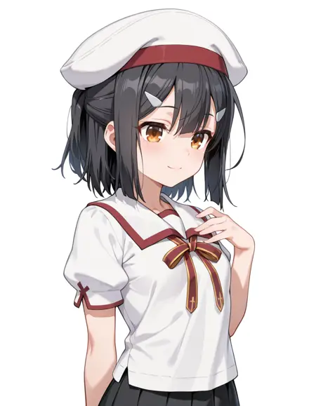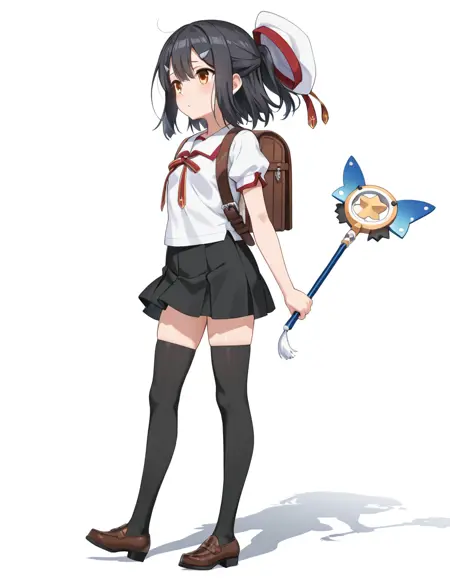 MiyuSchool, miyu_hairclips, scl_shirt, scl_pleated_skirt, scl_neck_ribbon, scl_sailor_collar, scl_thighhighs, scl_loafers, scl_hat