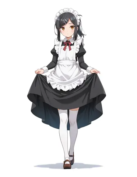 MiyuMaid, MMaid_hairclips, MMaid_maid_apron, MMaid_maid_headdress, MMaid_dress, MMaid_bowtie, MMaid_thighhhighs, long dress