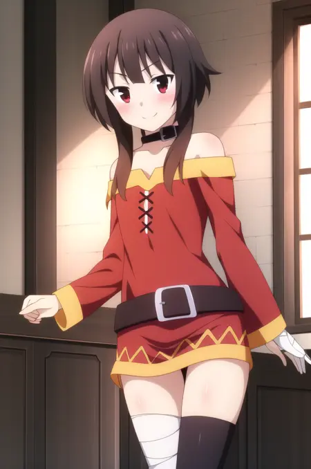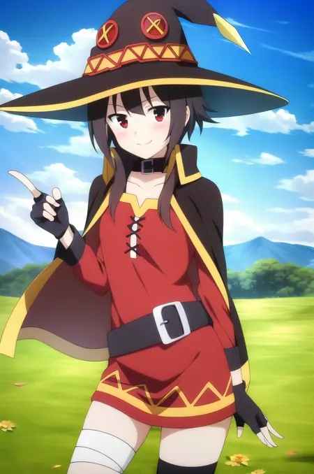 <lora:KonosubaMegumin-v1-07:0.8>, ChopioMegumin, 棕色头发,短发搭配长发绺,鬓发,红眼睛,(看向观众:1.3),