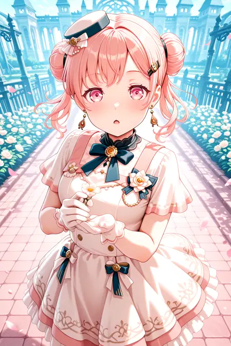 Hiromachi_Namami_Ban_Dori, 粉色眼睛, 粉色头发, 长发, 乳房, 双侧发束, 发带, 发夹