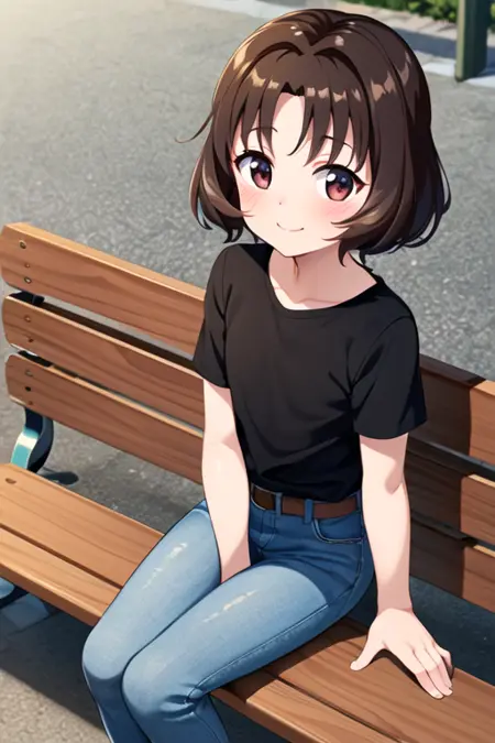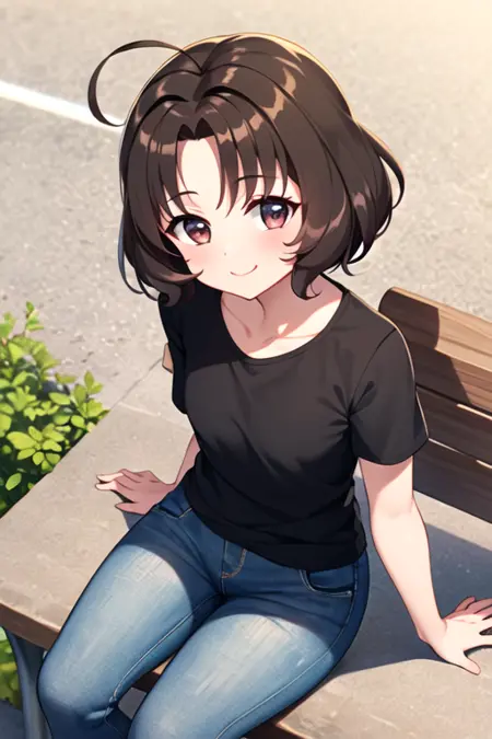 sasaki_rika, brown eyes, short hair, brown hair, blush