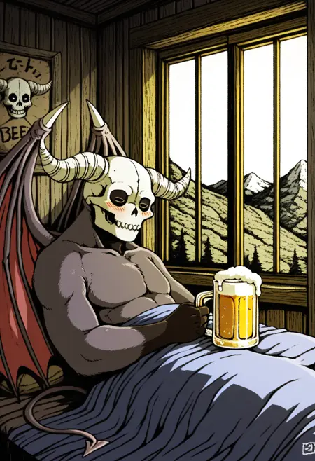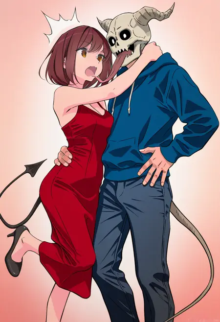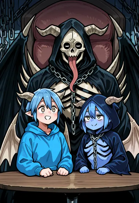 When displaying multiple characters in a scene, the skull head may appear on other characters, especially if you do not mention the hair tags of female characters. Or if there is a strong tag of another character in the scene, then the skull head of Chidaruma will not be displayed. In this case, it is better to write the tag "skull head", this should help. "skull head" tag was not used when training this lora, but it really helps to display chidaruma's head correctly.