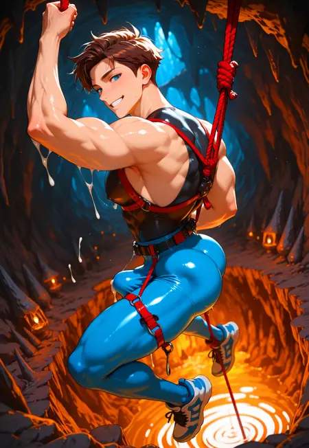 | トレーニングワード | spelunking, climbing harness, rope, action shot, rope to cave edge, one hand up, dangling off rope, carabiner, belt, climbing rope, rope from belt to cave pit, rope, dangling over pit,コピーしました! Detailed background, Cave pit, spelunking, stalactites, stalagmites, deep cave, vertical cave,コピーしました! |