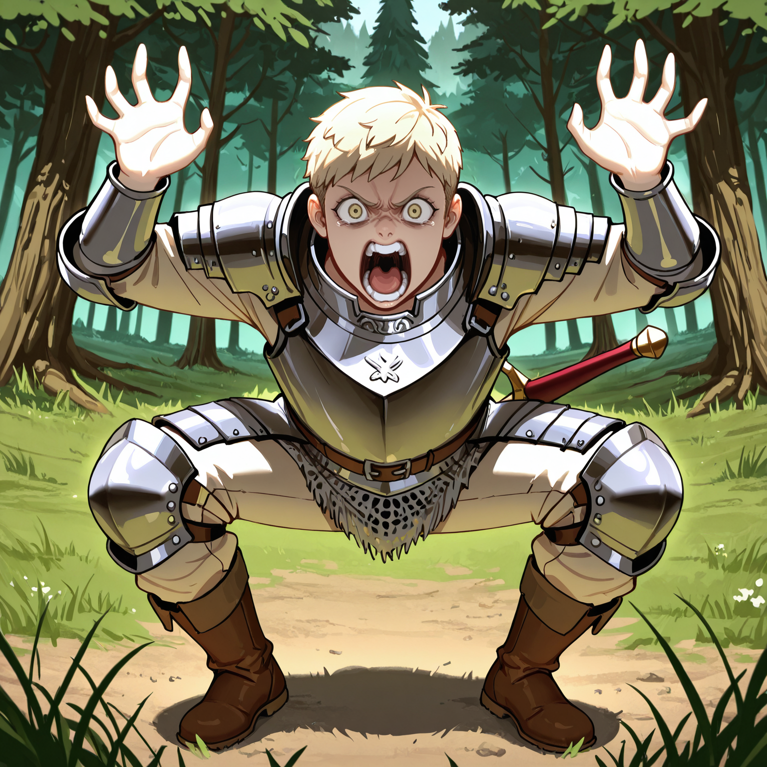 이것은 라이오스가 코커트릭스를 위협하는 자세를 묘사하는 LoRA입니다.