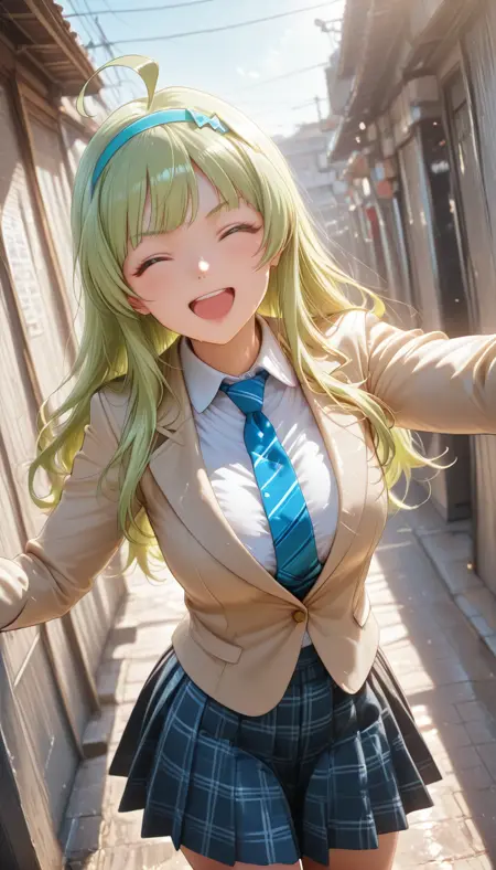 シャツ、スカート、ロングスリーブ、乳首、ジャケット、学ラン、鎖骨、白いシャツ、太もも、プリーツスカート、オープンな服、ネクタイ、シャツカラー、ミニスカート、オフショルダー、ストライプ柄の服、オープンジャケット、チェック柄、チェック柄スカート、青いジャケット、ブレザー、グレーのスカート、青いネクタイ、シャツをイン、ストライプネクタイ、オープンカラー、ルーズネクタイ、ジャケットが部分的に脱がされた、斜めストライプ柄の服、斜めストライプ柄のネクタイ、