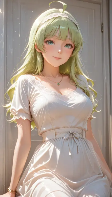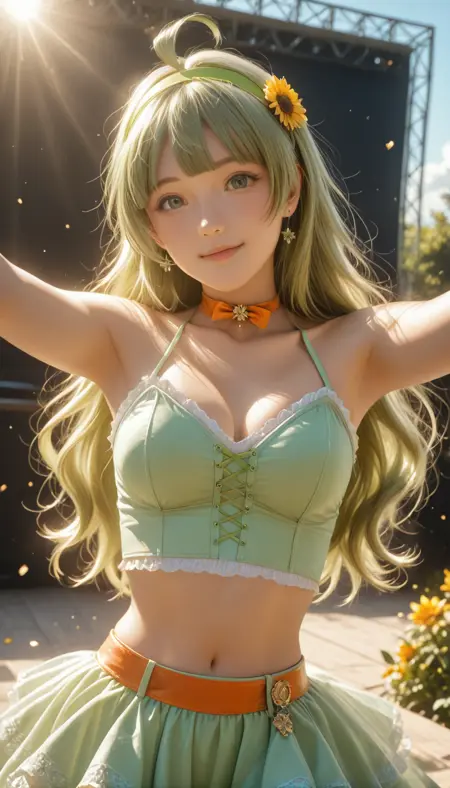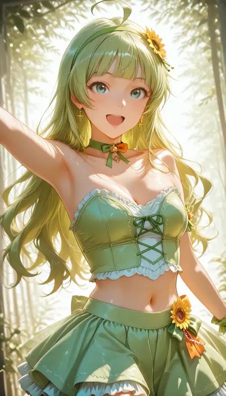 IMShimaElena、長い髪、胸、青い目、大きな胸、非常に長い髪、中程度の胸、あほげ、緑の髪、ブランケット前髪、アクアアイズ、ウェーブヘア、