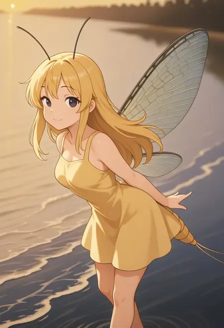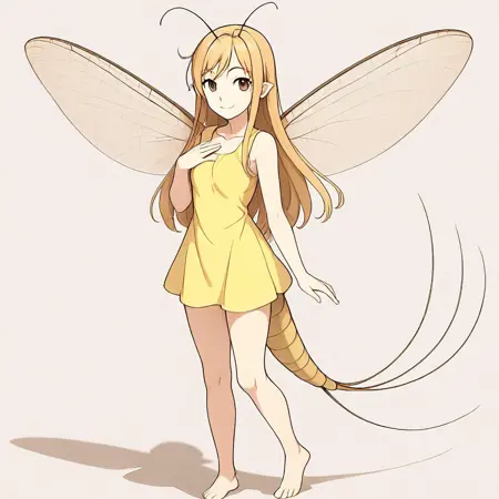 This Lora is used to generate mayfly girl images. Mayfly lava can live for years, but once mature, they can only live for one day, have intercourse, lay eggs and die. I found that most monster girl theme art doesn't include the mayfly, so I trained this Lora.
