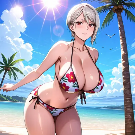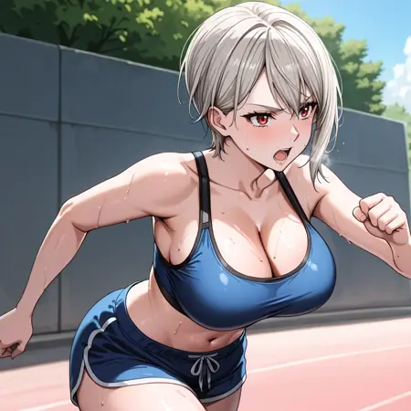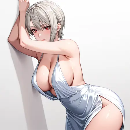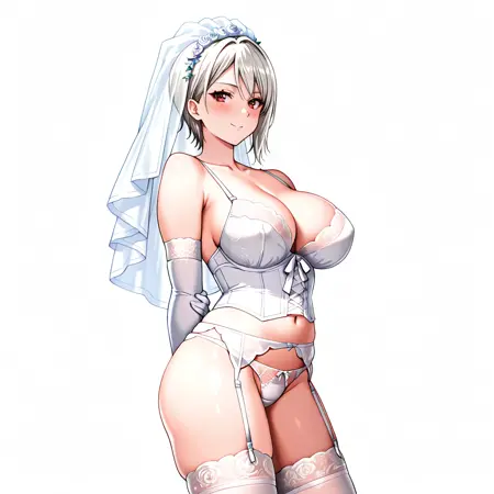 带厨师服的触发词:AliceNakiriChef, 厨师, 1girl, 大胸部, 短发, 白色长裤, 牛仔构图