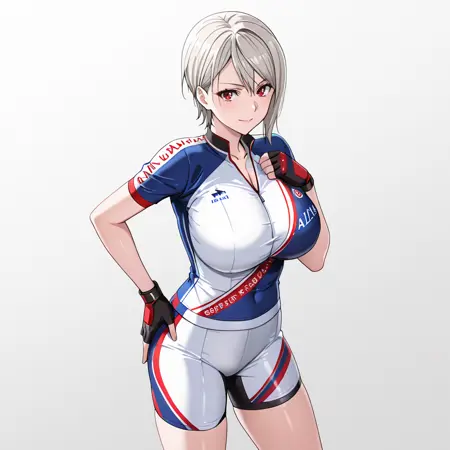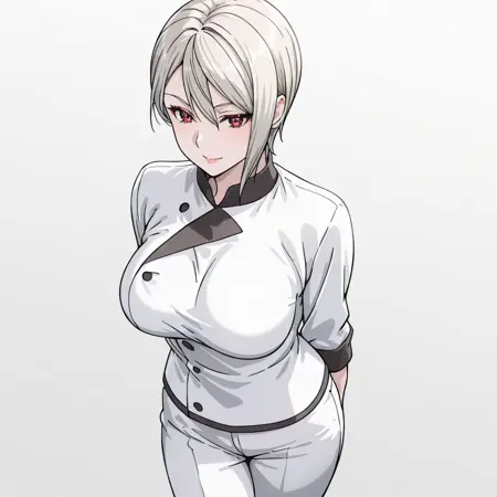 料理人衣装付きトリガー: AliceNakiriChef, 料理人, 1girl, 大きな胸, 短い髪, 白いズボン, カウボーイショット