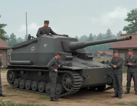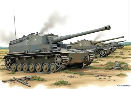 IV号a型10.5cm対戦車自走砲"ディッカーマックス"は第二次世界大戦中にドイツで開発された試作自走砲です。Ⅳ号戦車の車体を改修し、オープントップの戦闘室に強力な52口径10.5cm カノン砲を搭載していました。1941年に2両の試作車量が完成しバルバロッサ作戦(対ソ連戦)に投入されました。
