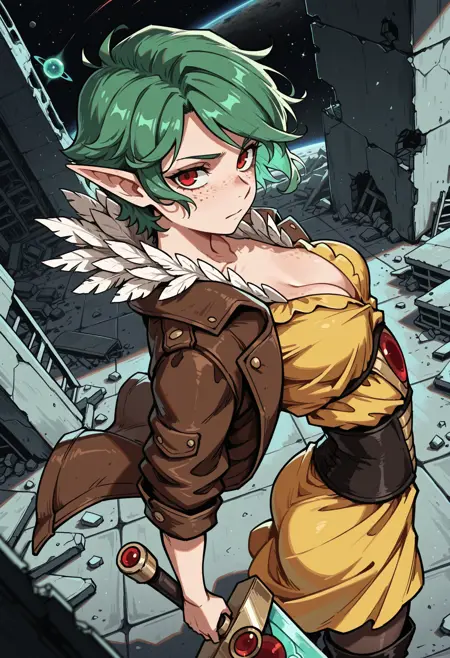 角色:1个女孩、红发、短发、胸部、蓝眼,