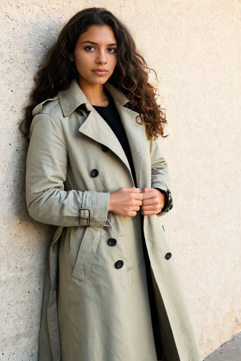 Trigger word: Portrait face photo of a 23-year-old Spanish woman, warm olive skin, long, unruly dark curly hair, piercing dark brown eyes, neutral backdrop