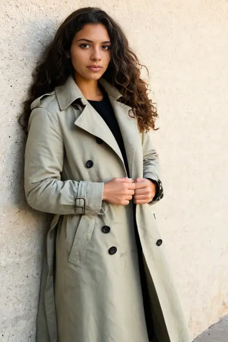 트리거 단어: Portrait face photo of a 23-year-old Spanish woman, warm olive skin, long, unruly dark curly hair, piercing dark brown eyes, neutral backdrop