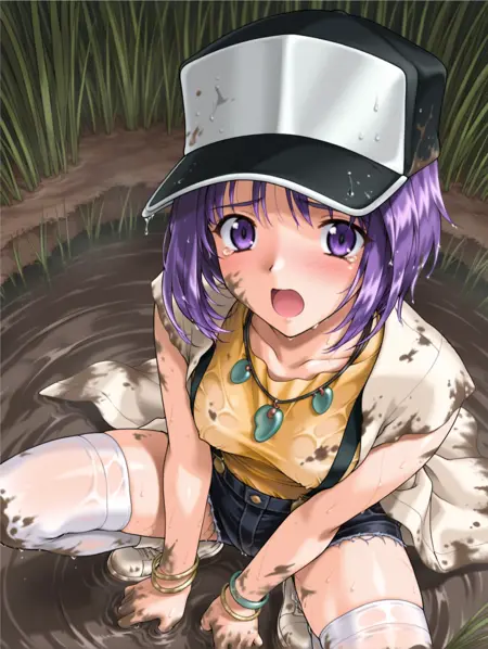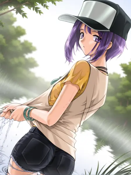 トリガーワード・t_kimiko,purple hair,short hair,purple eyes,hair intakes,