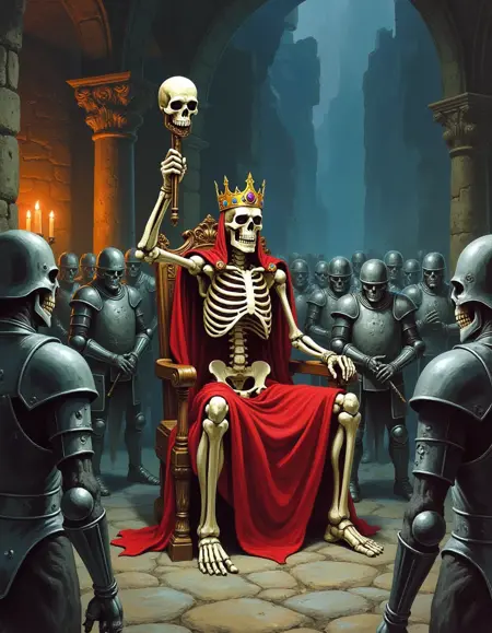 _一位披着斗篷的死灵法师,在一座古老月光下的墓地中,从崩塌的坟墓中召唤出一支骷髅军队。以1980年代RPG风格绘制,复古奇幻 dndllstr 风格插画,手工墨线勾勒,充满戏剧性阴影与奇幻细节。