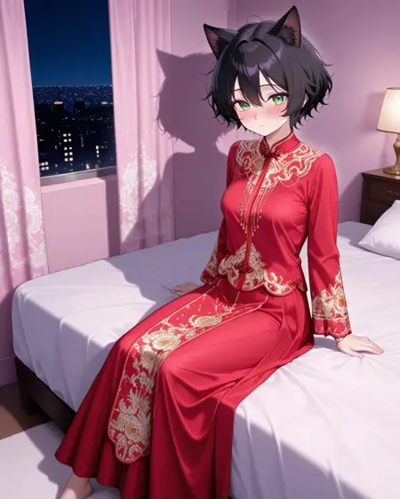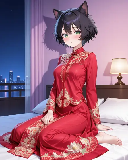 結婚式の賑やかさがようやく静まり返った。Aさんは私を新婚室へ導き、金糸で織りなされた赤い衣装を纏っていた。その衣装は彼女の曲線を引き立てつつ、品ある美しさを保ち、まるで最も美しく輝く炎のようだった。