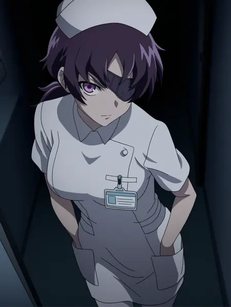 IL_由乃·明乃护士,单人,1女孩,紫色头发,短发,低马尾,紫色眼睛,胸部,眼罩