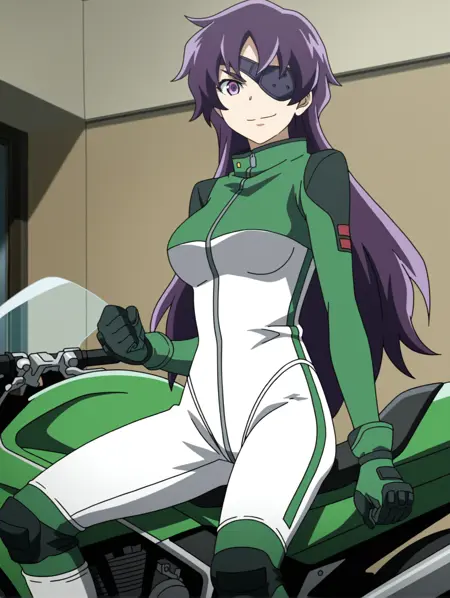 IL_由乃·明乃赛车服,1女孩,单人,紫色头发,长发,紫色眼睛,胸部,眼罩