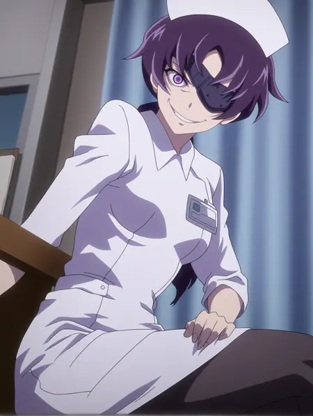 IL_來生淚 護士,單人,1名女孩,紫色頭髮,短髮,低馬尾,紫色眼睛,胸部,眼罩