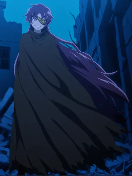 IL_由利井ミネネ 軍服、一人、女の子、紫髪、ロングヘア、紫目、アイパッチ、胸