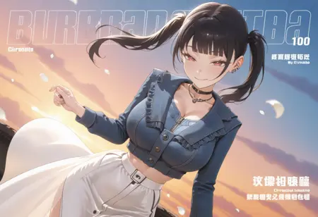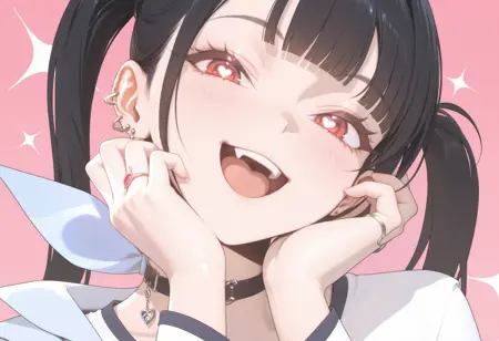 태그: SORA, 검은 머리, 빨간 눈, 더블 테일, 둔한 앞머리,
