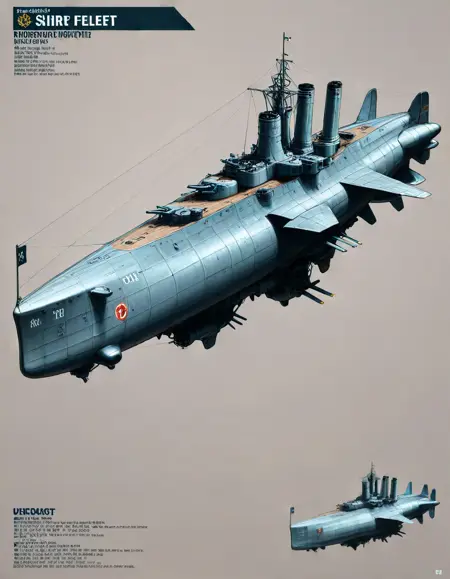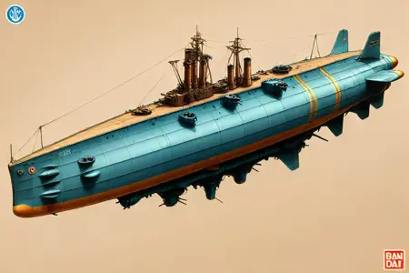airship, [u-boat submarine, | battleship ] {world war ii | steampunk, victorian, }