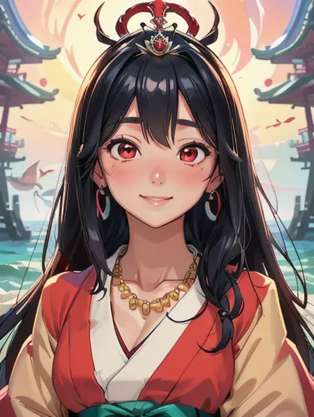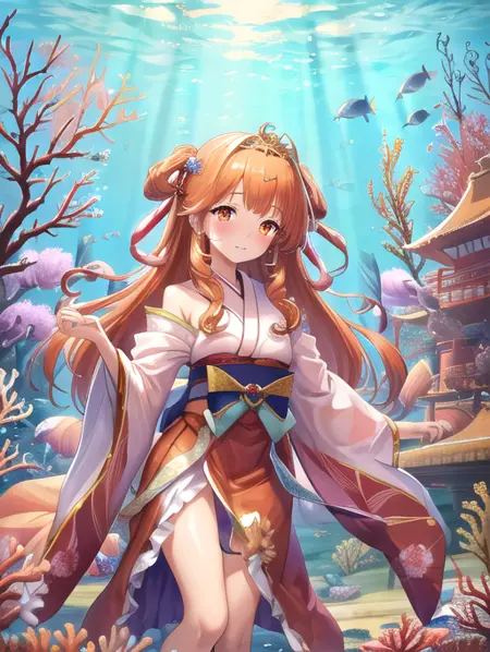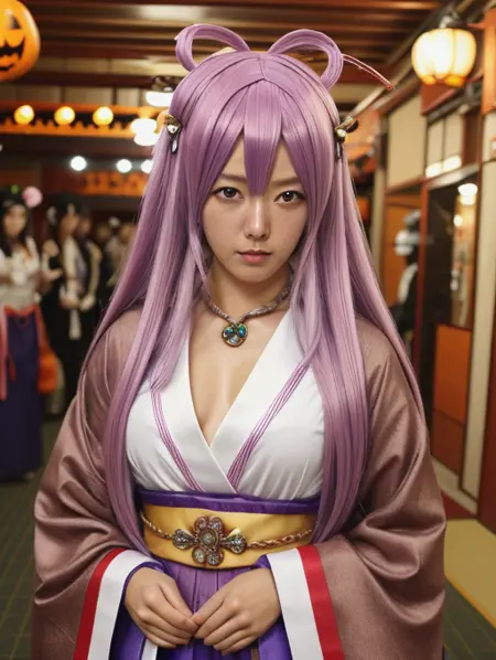 最后一位万圣节 LyCORIS!你的老婆拥抱了御前姬的传说与装扮!她的美貌将被善良的海洋之恋者所熟知。在生成时,若头发出现问题,只需增加发环和束发的权重。你也可以尝试降低人物 LoRA 的强度,改用描述性词语以确保角色仍可辨识。