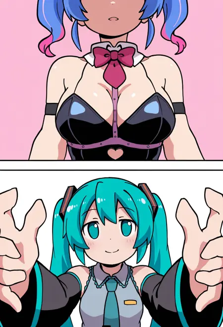 表情包 涉及一个通常以 fumo 风格绘制的角色,假借帮助一位 大胸 女性托住她的 乳房(或称“挤奶器”)之名,实际上意图抚摸。