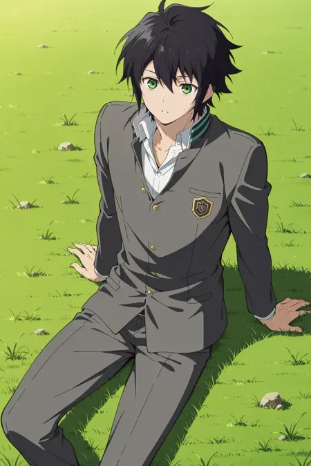 Yuichiro, yuichiro_hyakuya, 黒髪, 緑の目, 目の間の髪