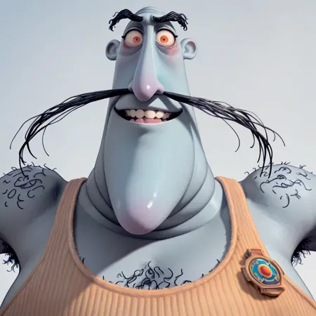 | トレーニングワード | Mr. Bobinsky, solo, male, colored skin, extremely tall, large stomach, white tank top, black boots, blue shorts, hairy chest, hairy arms, untamed moustache, hairy shoulders, hairy armpits, hair below navel, bushy eyebrows, saggy eyelids, black pupils, orange eyes, コピーしました! |