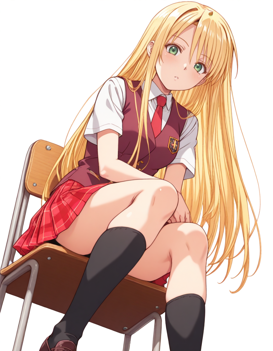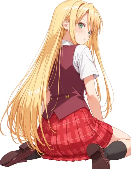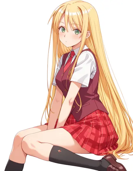 yukihiro ayaka, blonde hair, long hair, green eyes,