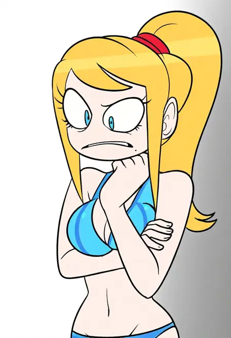 AfroNinja360, samus aran, yellow hair, tied hair, zero suit,