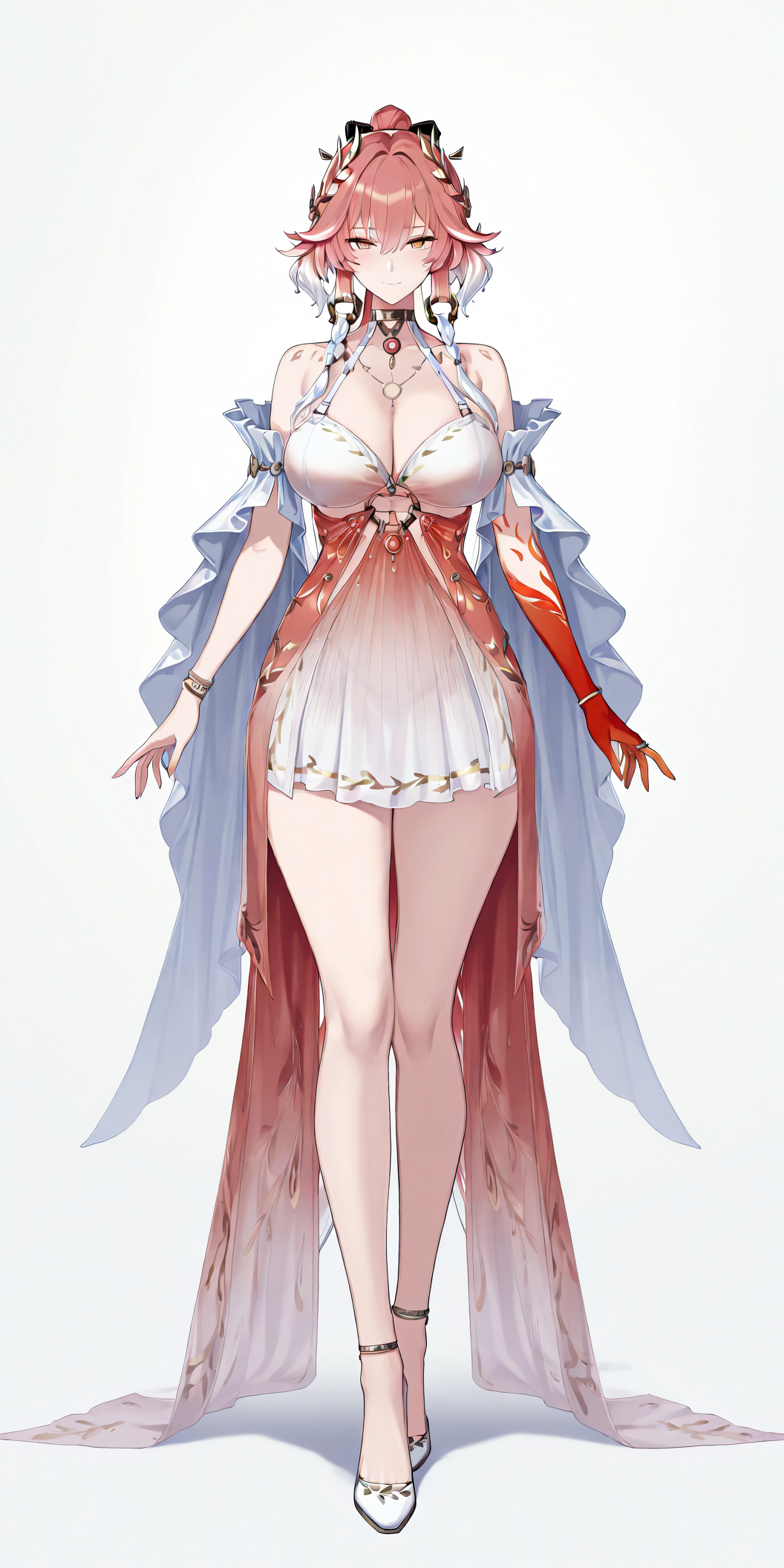 鸣潮-长离 桂枝宁芙-changli,necklace, hair ornament,red hair,see-through dress,single red hand,smile,blush.safetensors