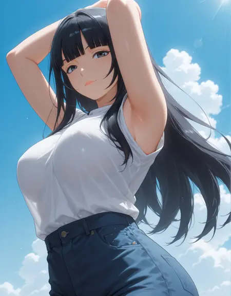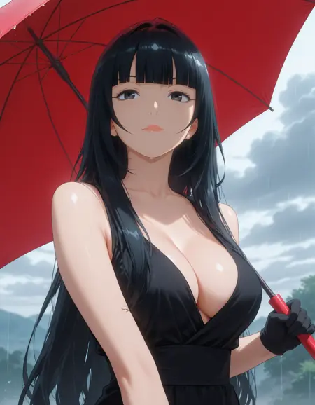 基础触发词:黑发、长发、黑眼、刘海、薄唇、自然的大乳房