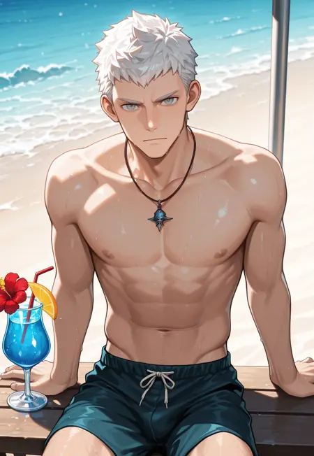 일반 프롬프트: nero \(devil may cry\), white hair, blue eyes, short hair, jacket, gloves, pants