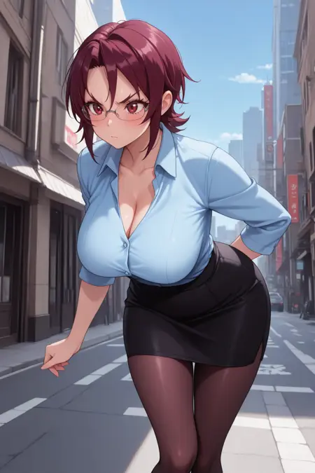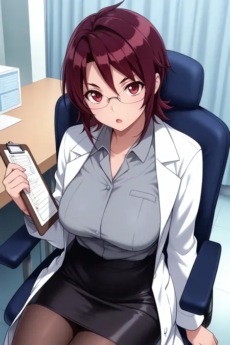 - 일상 복을 원하면 "안경, 회색 셔츠, 칼라 셔츠, 실험복, 검은 치마, 미니스커트, 연필 스커트, 팬티스타킹"을 추가하세요.