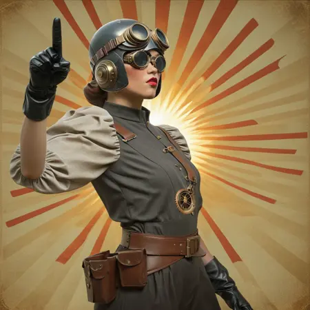 The focus is on retro-futuristic Dieselpunk Propaganda posters, blending the pin-up allure of Gil Elvgren’s Bomber Girls, the bold futurism of Syd Mead, and the revolutionary edge of Shepard Fairey’s visual language.