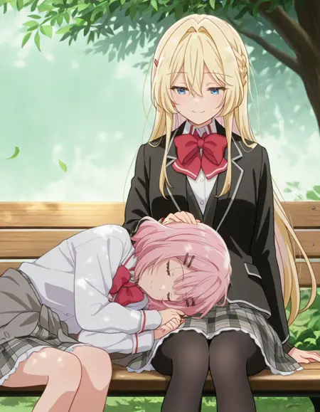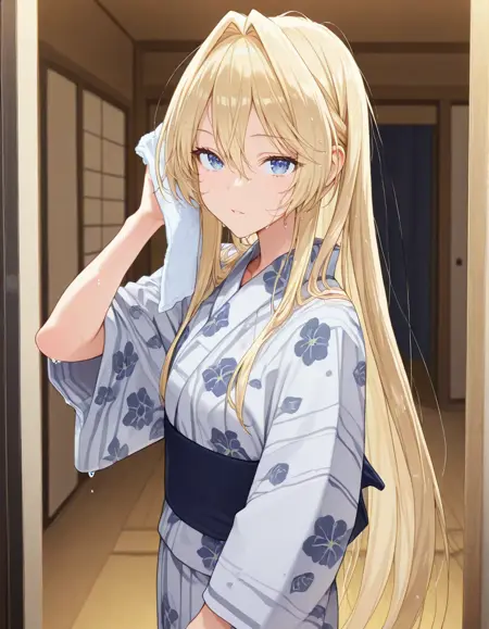 <lora:mai_ouzuka-watanare_s1-ixl-anime-soralz:1>, 逢坂真(渡良),长发,金发,多色发,内层发色,辫子,发丝垂落,发丝遮眼,鬓发,蓝眼睛