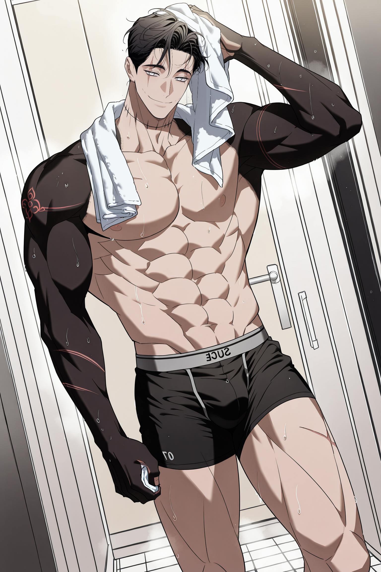 Guwon, pyo_guwon, 검은 머리, 흰 눈, 얼굴에 흉터, 머리카락 하나, 검은 팔, 검은 어깨