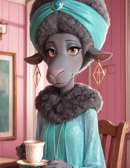 NanaNoodleman, anthro, sheep, female, elderly, grey hair, brown eyes,