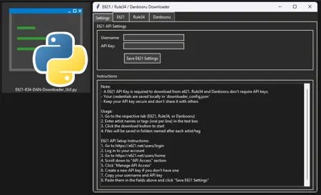 E621-R34-DAN-Downloader: A Python based GUI application that allows you to download content from E621, Rule34, and Danbooru. Simply enter an artist tag (or a list of tags, one per line) into the corresponding tab, then click “Start Download.”
