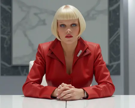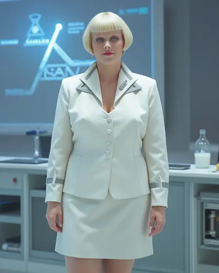 깊은 네크라인과 "더블" 교차된 라펠 컬러가 있는 정장. 기본적으로 회색-검정으로 표시되지만 다른 색상도 지시할 수 있습니다. 캐릭터는 키워드 "cam1ll3"로 강조할 수 있습니다(그녀는 과학소설적인 외모와 블론드 단발 머리를 가지고 있습니다). 그러나 다른 캐릭터 로라들도 잘 작동합니다.