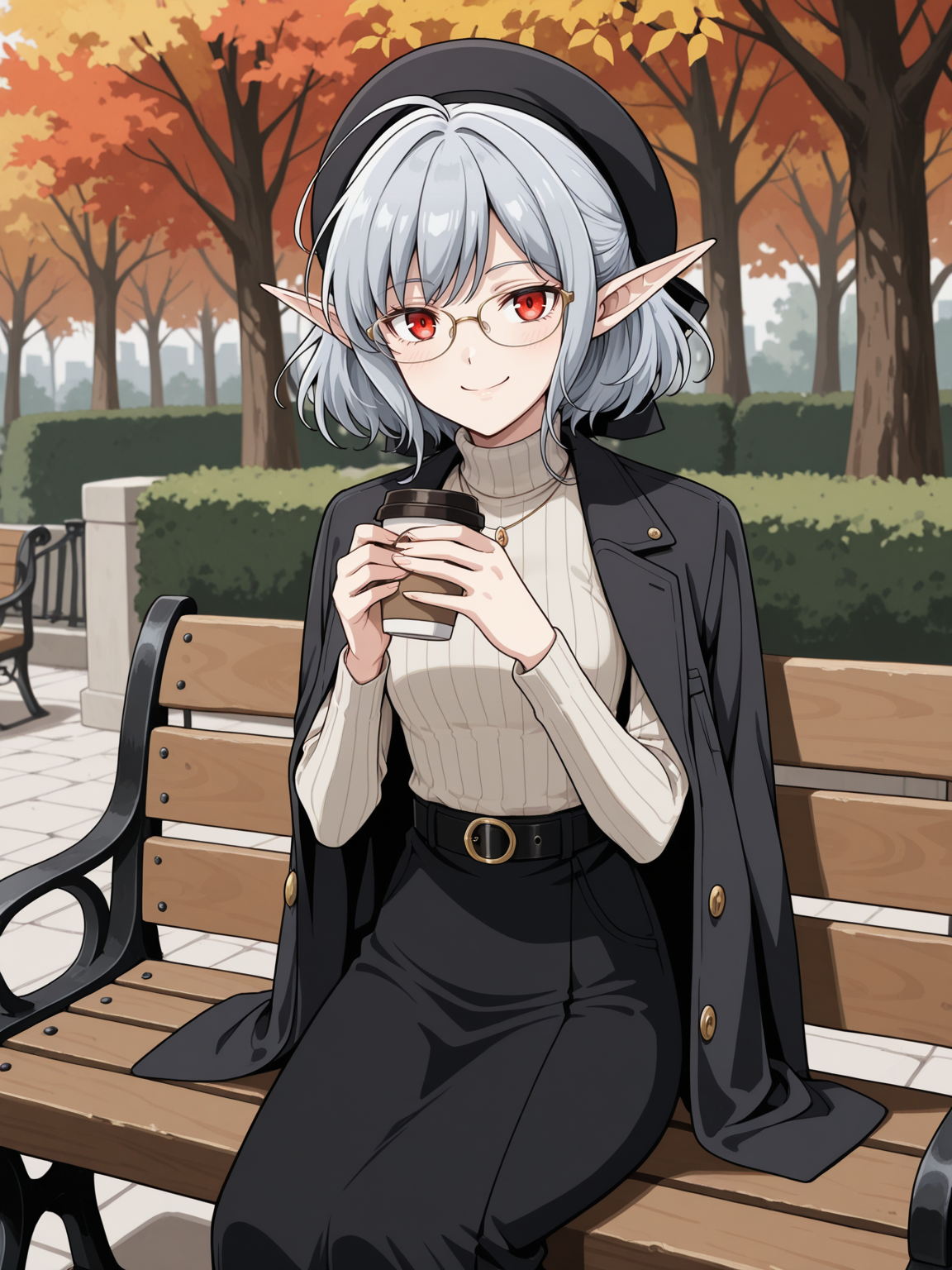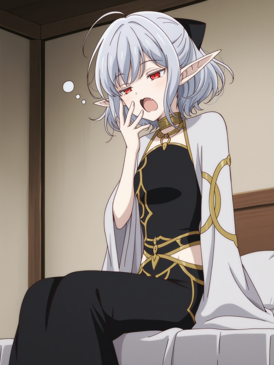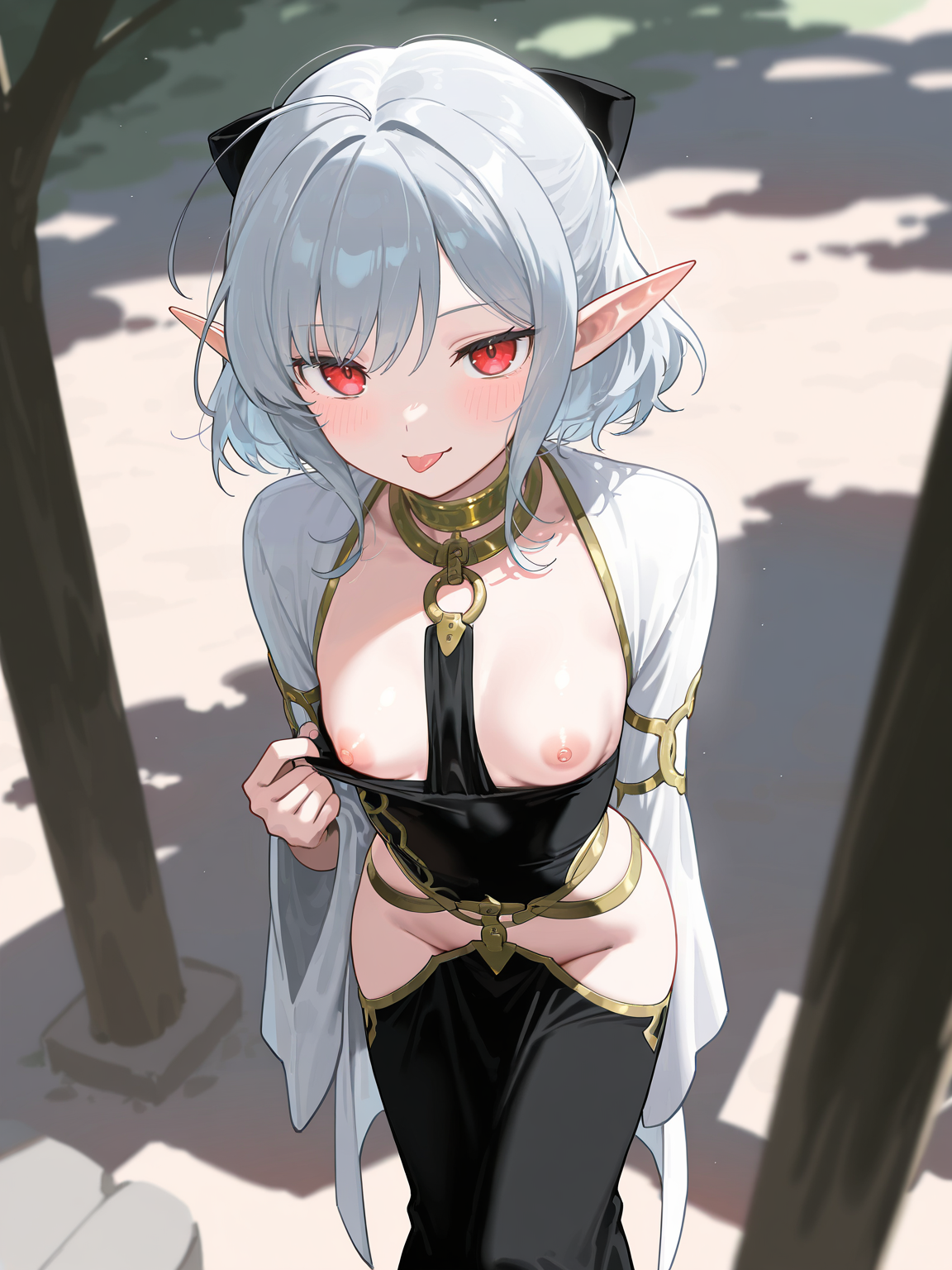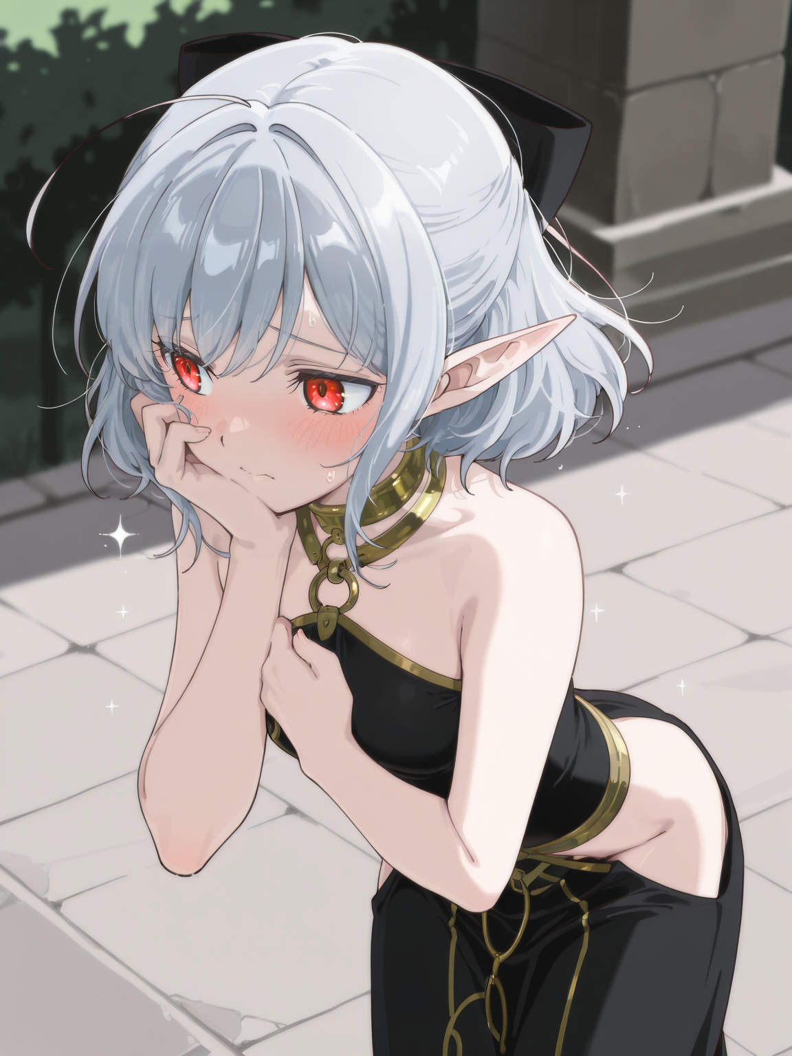 外观:odeinoatou,短发,灰发,红眼,长尖耳,胸部小巧,呆毛,黑色发带