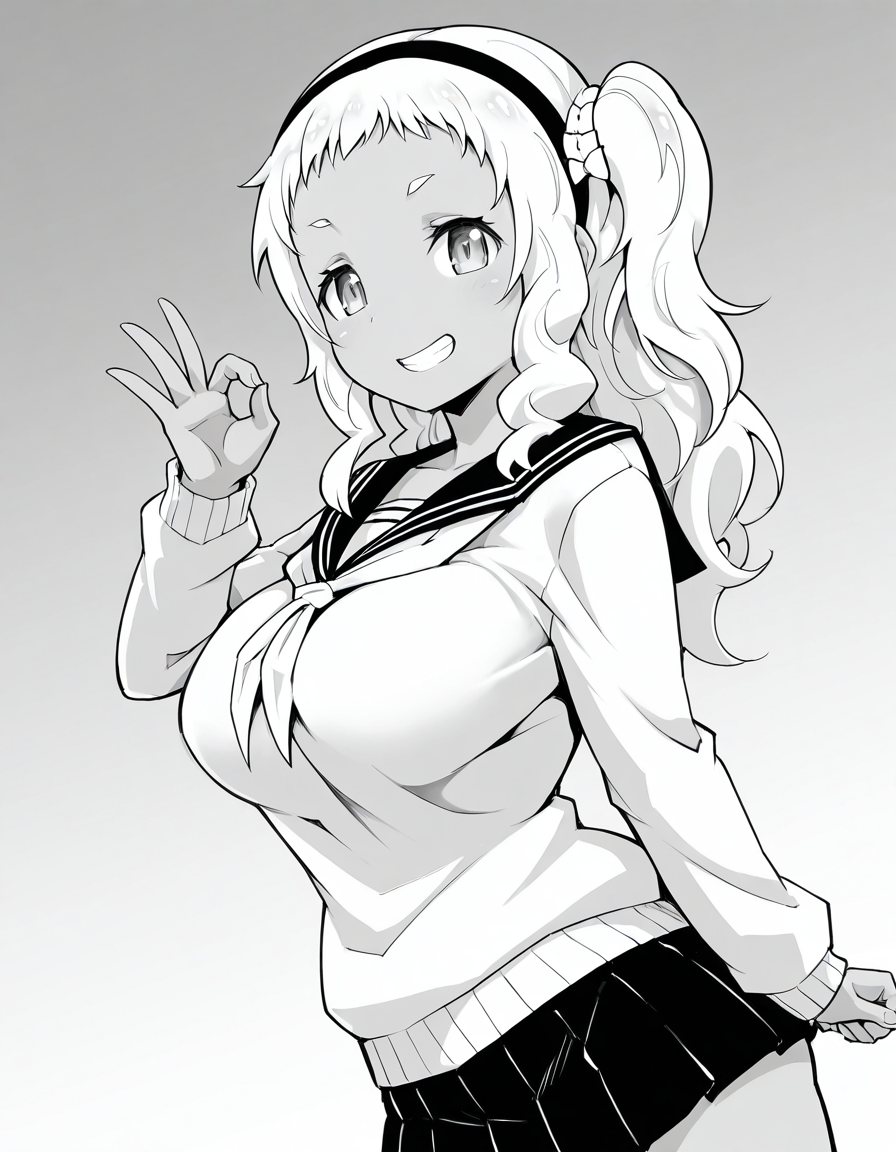 色に関するプロンプトを削除し、マンガスタイルにするためにmonochrome, grayscaleを追加してください。