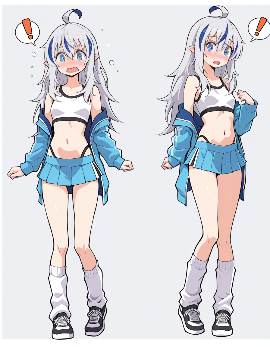 衣装2- ルーズソックス、肌見せ、ハイレグパンツ、下着、オープンな服装、パンツ、靴、クロップドトップ、スポーツブラ、オフショルダー、ミニスカート、マイクロスカート、ジャケット