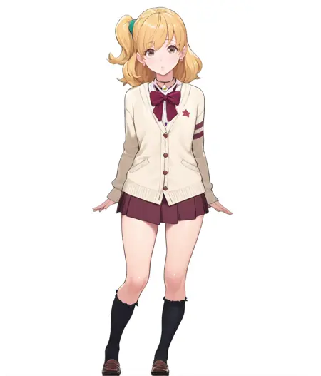 彼女に関するアートワークは意外と少なく、データセットのほとんどは低品質なアニメのスクリーンキャプチャから構成されています。そのため、生成される画像は時折ぼやけることがあります。その場合、ネガティブプロンプトに“blurry”を追加すると改善されます。また、サンプル画像を生成する際には、彼女の体型が男の子のように見えることから、“otoko no ko”というタグを使用しました。“1girl”というタグを使用すると、彼女に女性らしい曲線が現れてしまいます。