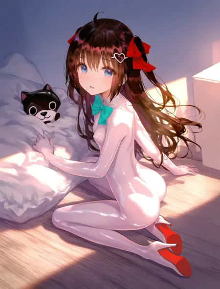 看到身穿连体衣的女孩脚上光着脚,却穿着与美丽、光滑、一体化的服装完全分离的高跟鞋,这令人极其不适;更恼人的是,脚上覆盖着乳胶,还踩着该死的高跟凉鞋!!!我无法忍受这种荒谬的情况,因此我制作了这个LoRA,以防止任何鞋或靴子的形状出现在光滑的连体衣上。